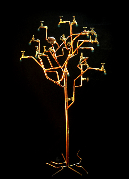 sculpture made of copper tubes & water taps